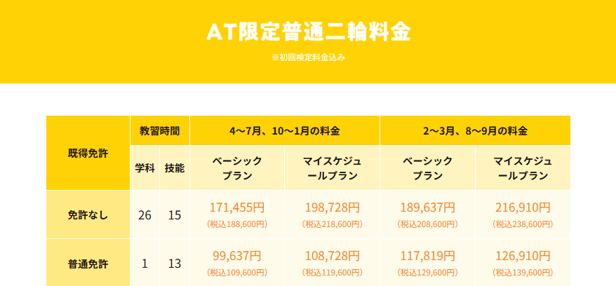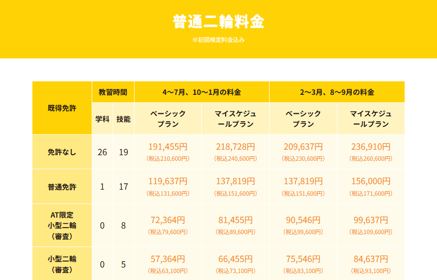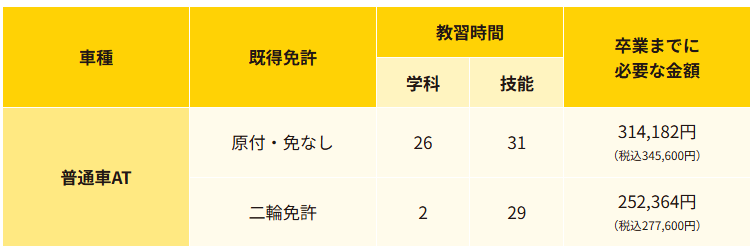 ※仮免学科試験料証紙代として2,900円(非課税)と写真代1,100円が別途かかります。